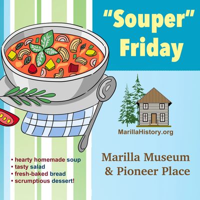 Join us for a Souper Friday gathering April 17, 5-7 p.m., at Marilla Township Hall, 9991 Marilla Road, Copemish, MI. This is the only Souper Friday that will be held this year, so don't miss it.